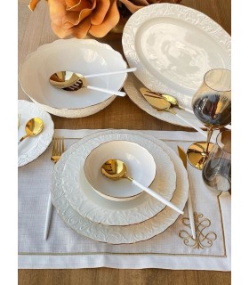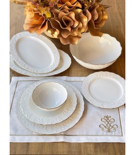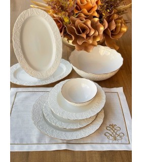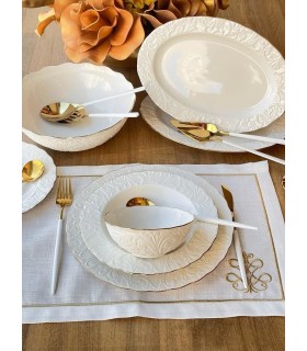 سرویس غذاخوری 6 نفره 27 پارچه مدل گل برجسته برند ipek ترکیه شامل: 6 عدد بشقاب پلوخوری (27 سانتی متر) 6 عدد بشقاب خورشت خوری (22 سانتی متر) 6 عدد پیش دستی (20 سانتی متر) 6 عدد کاسه (14 سانتی متر) 2 عدد دیس بیضی (21x30...