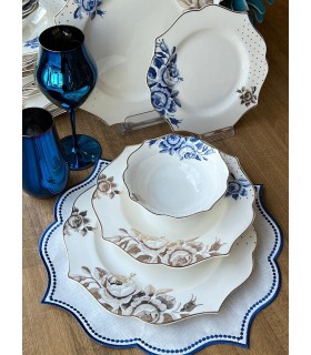 سرویس غذاخوری 6 نفره 24 پارچه مدل bianca رنگ آبی قهوه‌ای از برند rossev ترکیه شامل: 6 عدد بشقاب پلوخوری 6 عدد بشقاب خورشت خوری 6 عدد پیش دستی 6 عدد کاسه جنس این سرویس غذاخوری زیبا بن چاینا است که در عین ظرافت و سبکی...