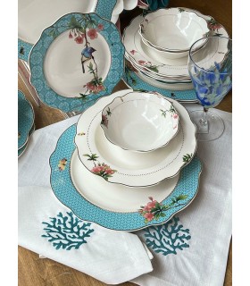 سرویس غذاخوری 6 نفره 24 پارچه مدل branch رنگ آبی از برند rossev ترکیه شامل: 6 عدد بشقاب پلوخوری 6 عدد بشقاب خورشت خوری 6 عدد پیش دستی 6 عدد کاسه جنس این سرویس غذاخوری زیبا بن چاینا است که در عین ظرافت و سبکی بسیار...